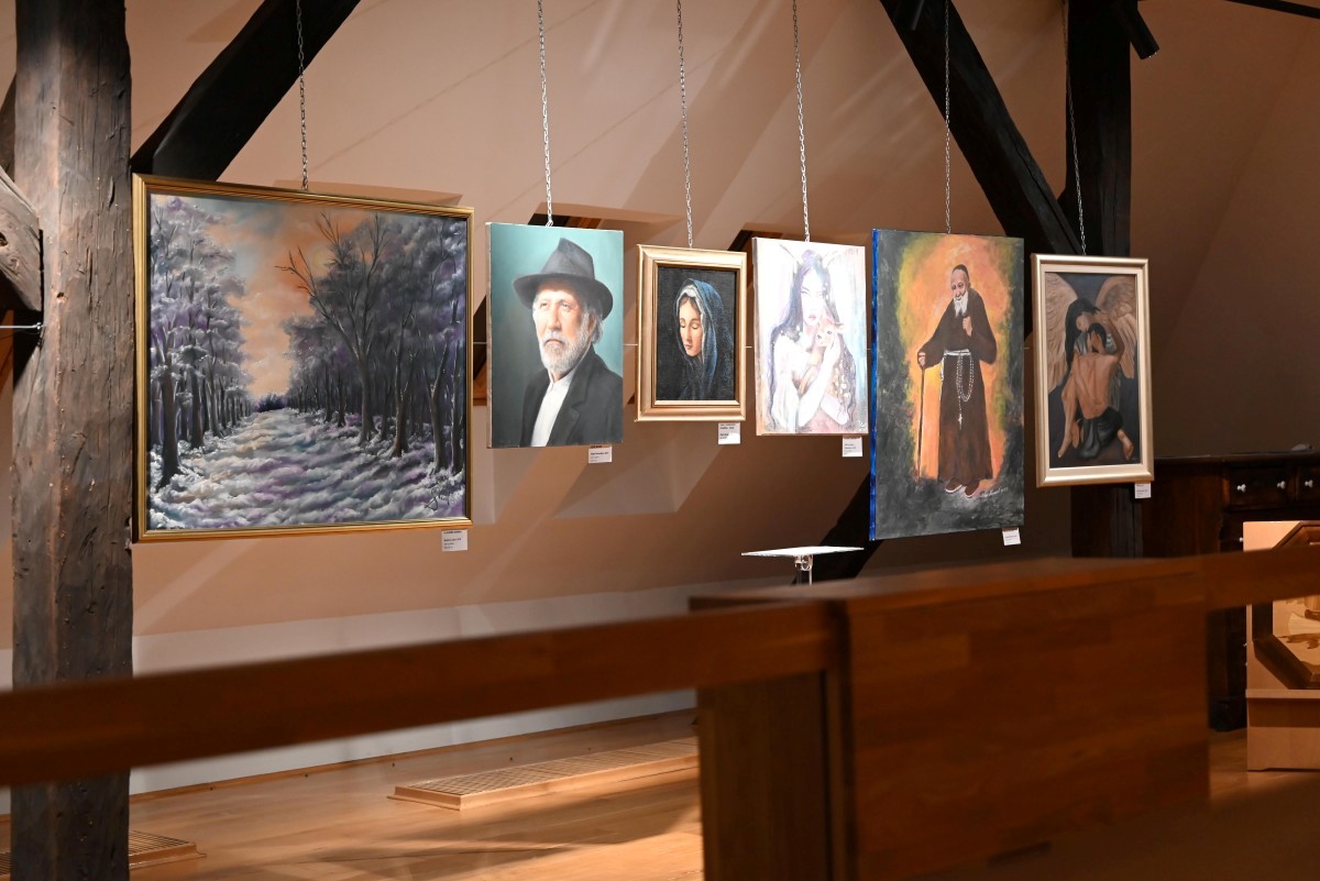 Na izložbi dominiraju pejzaži, u kojima se ističu vješti i iskusni potezi kistom. Posjetitelji tako mogu razgledati prizore pitomačkog vinogorja, razne cvjetne motive te portrete.
