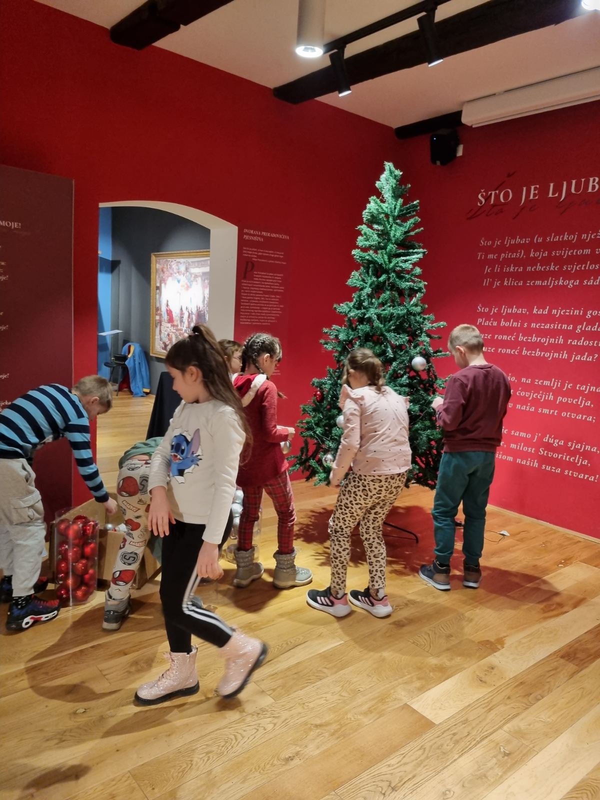 U ponedjeljak, 08. prosinca, s učenicima područne škole iz Turnašice održali smo Božićni književni klub. Nakon uvodne boižićne pjesme razgovarali smo o blagdanskim običajima u njihovim obiteljima. Čitali su božićne priče i pjesme te su uz pjesmu i ples ukrasili bor koji će biti u Kući Petra Preradovića.