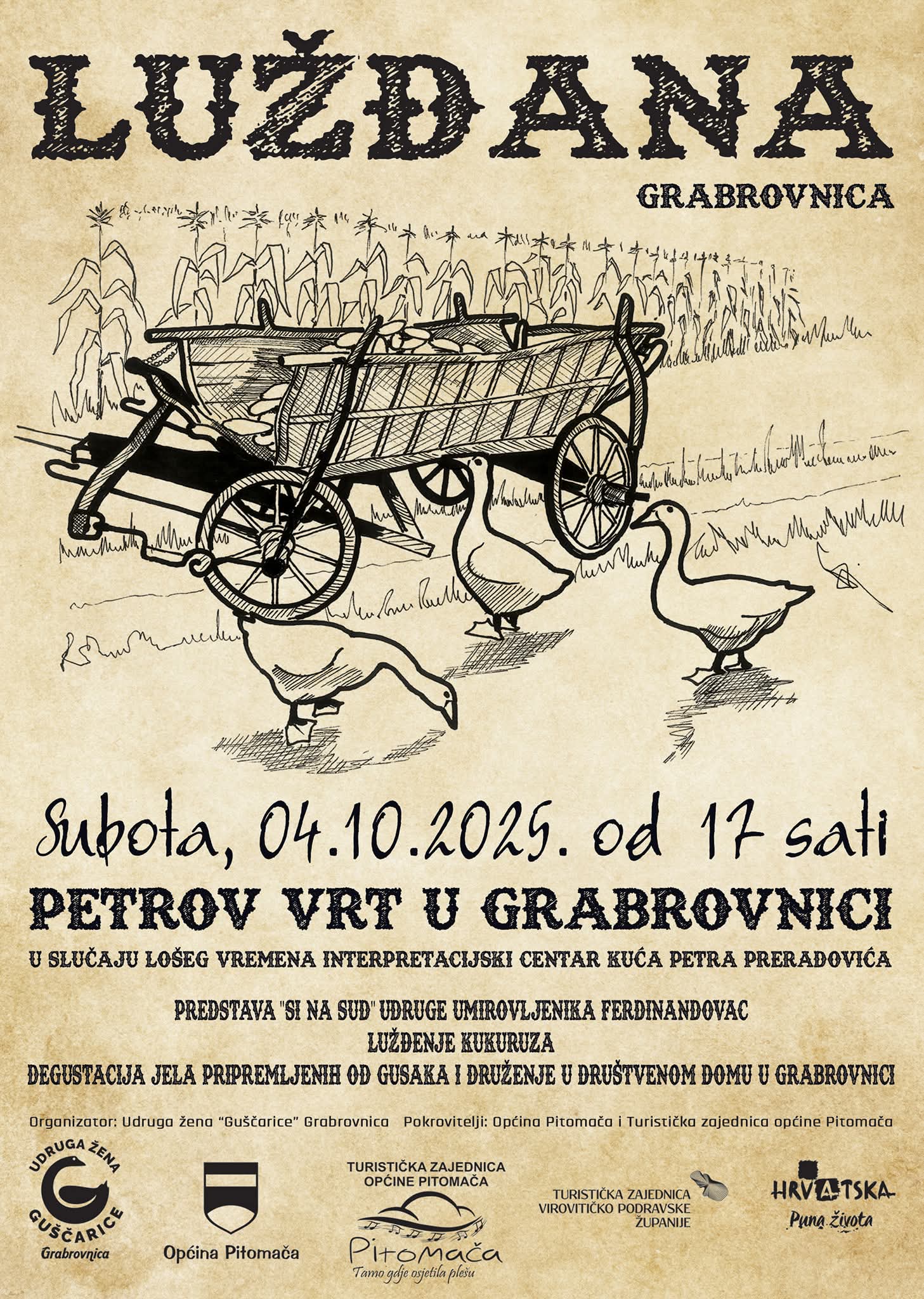 U subotu, 4. listopada, održat će se tradiocinalna manifestacija "Lužđana" u organizaciji Udruge žena "Guščarice" iz Grabrovnice.